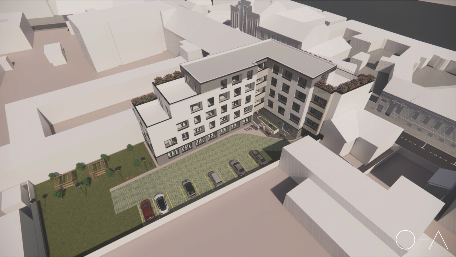 Ambasador Premium Residence se ridică impresionant pe patru etaje, oferind o arhitectură modernă și finisaje de înaltă calitate. Fiecare nivel a fost proiectat cu atenție la detalii, asigurând spații optime și funcționalitate maximă. Curtea interioară, un element distinctiv al complexului, oferă rezidenților un spațiu verde privat, ideal pentru relaxare și recreere. Dotările tehnice de ultimă generație, izolarea termică și acustică superioară, precum și sistemele de securitate avansate, transformă Ambasador Premium Residence într-un reper de confort și siguranță în inima orașului.