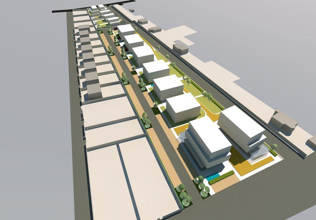 Compoziție: Ansamblu format din 8 clădiri moderne.